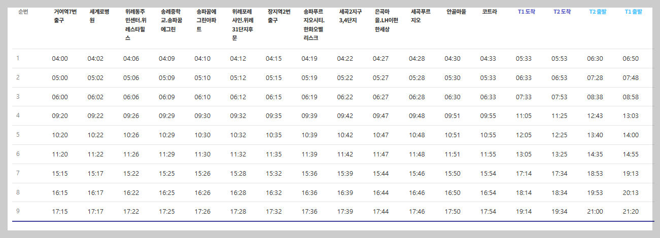 6600번 공항버스의 정류장별 운행 시간표는 아래에서 자세히 확인하실 수 있으며,